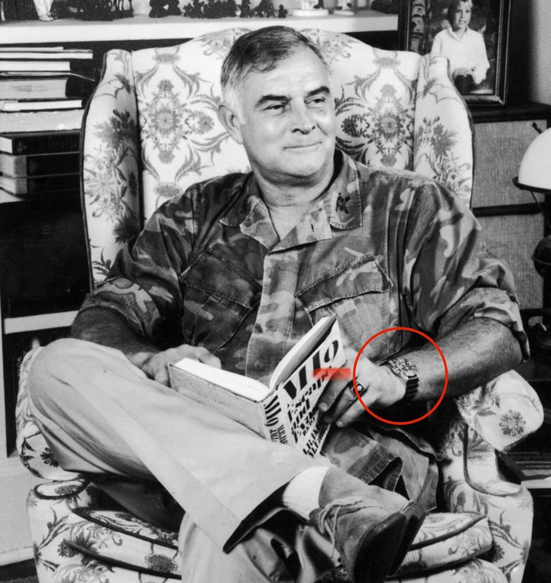 The man you see sitting in the chair reading, below, is Col. Charles A. Beckwith. He was a career US Army SF officer*. He’s wearing a Rolex and displaying some remarkable operator fashion sense.