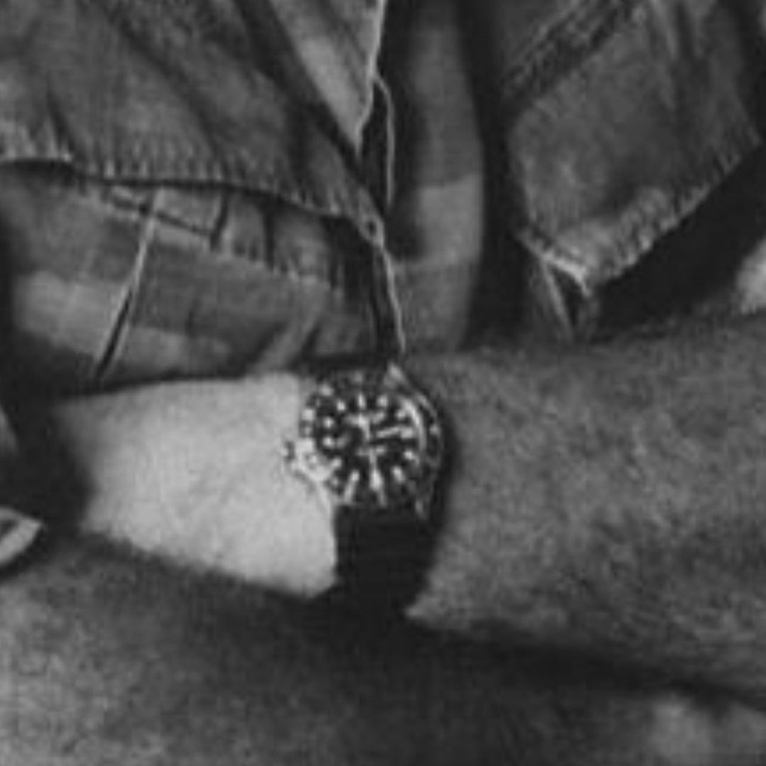 It’s a complete gangster move (and no surprise he chose it) to rock a Rolex GMT-Master on a rubber strap. I assume it is the Rolex 1675 model with what looks like an all-black bezel. This was a practical tool for a practical man.